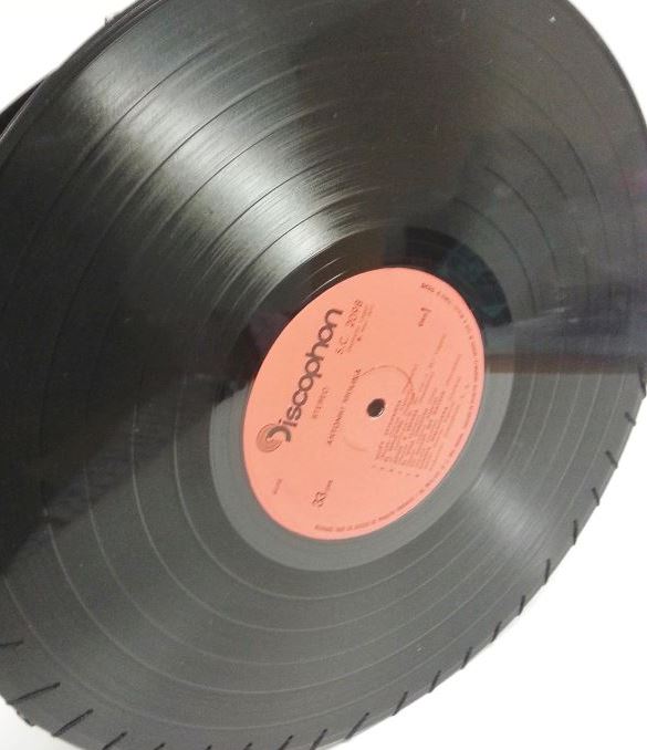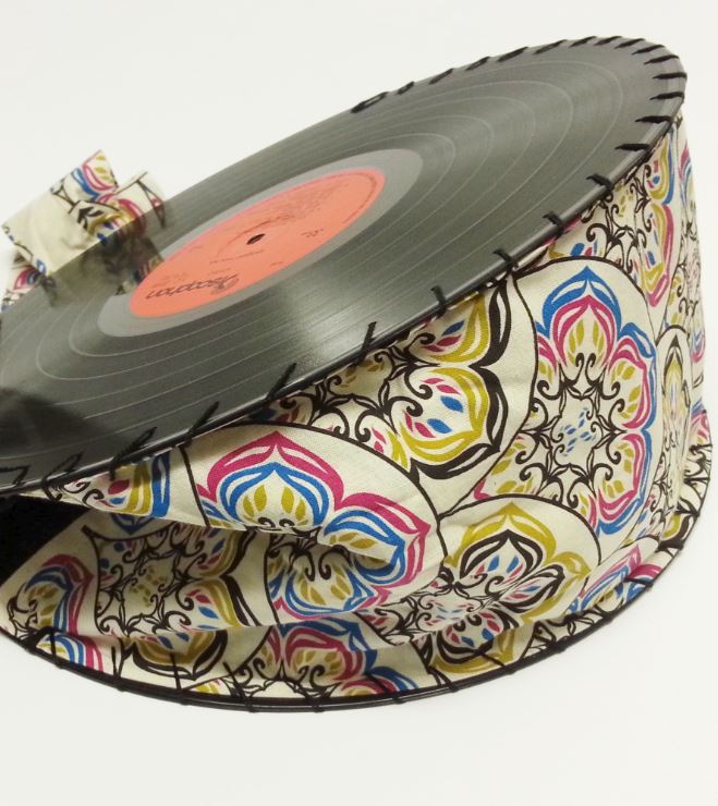 This is a 100% handmade purse from upcycled vinyl records and one of a kind hand printed fabric. Each one is truly unique! This purse features records from Jimmy Dean's Greatest Hits and Antonio Molina. Features fabric handles and base from 100% cotton muslin that has been printed with Eco-friendly water based ink. Note: This item is very sensitive to heat and sun exposure, do not leave in direct heat or sunlight, handle with care.